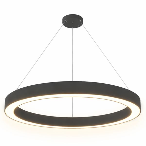 A 32-inch LED ring pendant light is the perfect balance of modern design and functional performance for both commercial lighting projects and upscale residential interiors. Designed with a sleek matte black aluminum frame, this modern circular chandelier delivers a clean architectural look that feels more refined than traditional decorative fixtures such as rattan chandeliers, wicker pendant lights, or bulky drum-style pendants. Its minimalist hollow ring profile creates an open, spacious visual effect while providing efficient 360-degree LED illumination for spaces like open offices, hotel lobbies, retail showrooms, libraries, and contemporary living rooms. As a high-performance circle hanging light fixture, this 32-inch pendant light combines energy-efficient LED technology with a timeless modern aesthetic, making it an ideal choice for designers, architects, and contractors seeking elegant indoor architectural lighting solutions.
